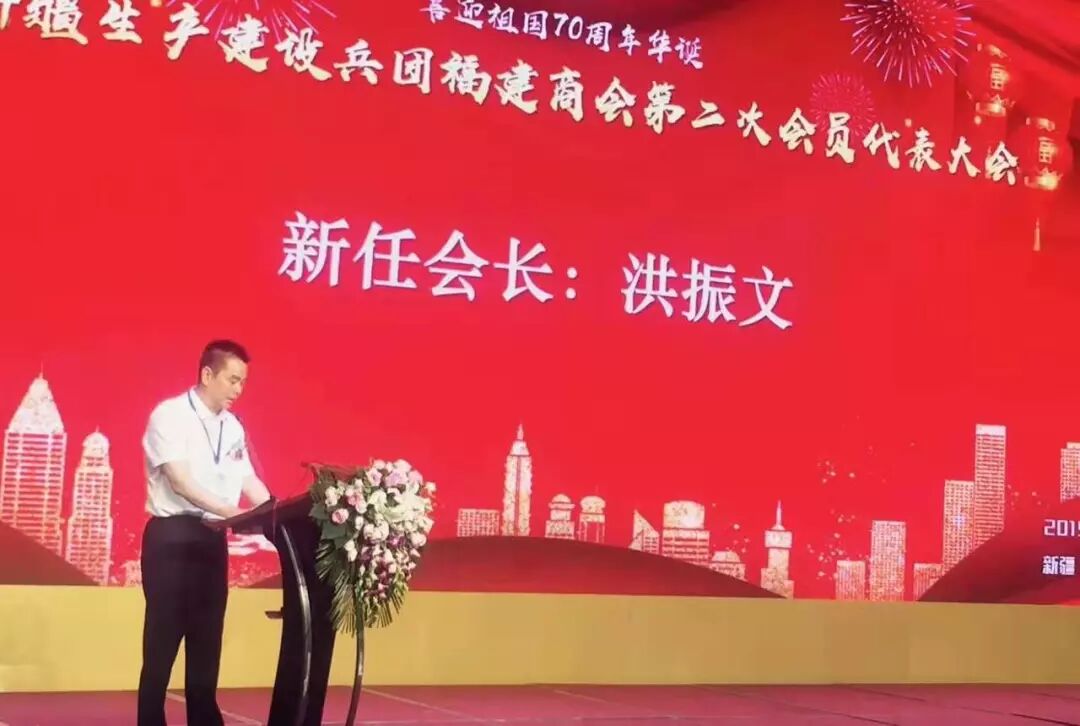新当选的兵团福建商会会长洪振文在接受福建省工商联刘军副主席授牌后作就职讲话,他表示要紧紧抓住新疆丝绸之路经济带核心区建设这一重大战略机遇,紧跟新时代、展现新作为,汇聚人脉商脉,搭建好商会服务平台,鼓励引导全体会员互通信息、共享资源,相互帮助、相互支持,共同发展,进一步推进双边的经济贸易与文化交流,促进商会更好更快发展,并积极投身公益事业,回报社会、回报家乡,为兵团、福建两地的经济、社会、文化发展做出更大的贡献。